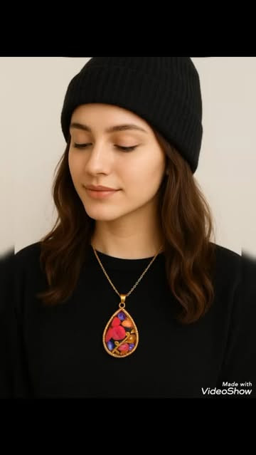 گردنبند رزینی دستساز با ترکیب سنگهای رنگی
